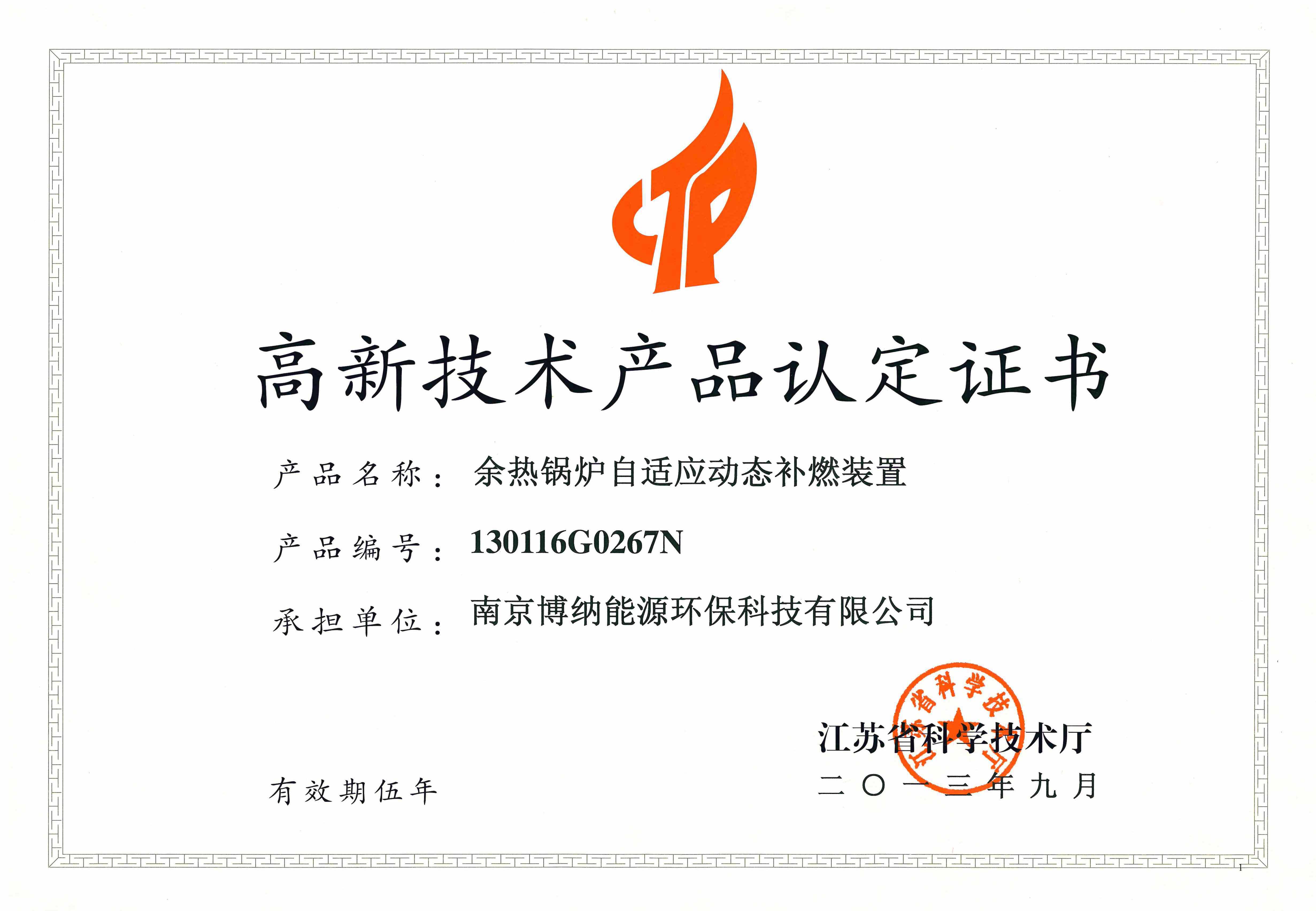 近日,由我司研發(fā)的“余熱鍋爐自適應(yīng)動態(tài)補燃裝置”產(chǎn)品通過專家評審,被認(rèn)定為江蘇省高新技術(shù)產(chǎn)品并獲得江蘇省科學(xué)技術(shù)廳頒發(fā)的認(rèn)定證書。近幾年,我司對科技研發(fā)給予高度重視,不斷加大企業(yè)研發(fā)投入,已相繼取得一系列科技成果。“高品”的認(rèn)定將激勵我司繼續(xù)加大新產(chǎn)品的開發(fā)力度,提高產(chǎn)品市場競爭力,依靠科技進(jìn)步促進(jìn)企業(yè)經(jīng)濟效益提高。