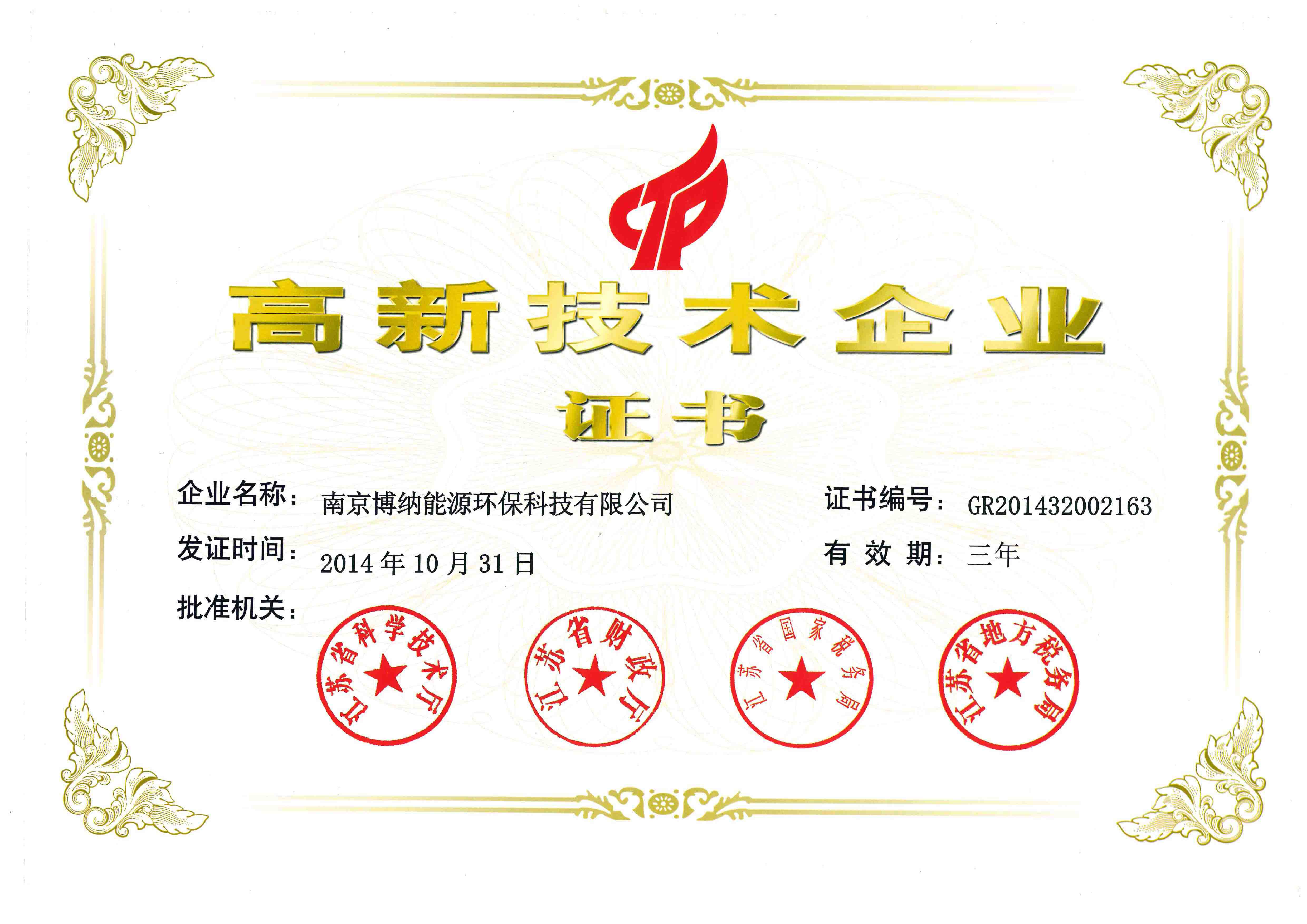 2014年10月31日,經(jīng)省科技廳等相關(guān)部門組織專家評審、公示后,博納成功獲得國家高新技術(shù)企業(yè)認(rèn)定,本次高新技術(shù)企業(yè)認(rèn)證的通過充分顯示了公司的整體實(shí)力,同時(shí)也是各部門人員相互配合,辛勤付出所取得的結(jié)果。